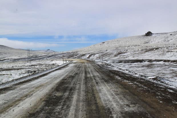 Il 10 gennaio inforchiamo le bici e iniziamo a pedalare; penso sia stato il giorno peggiore da quando siamo partiti e il più pericoloso di tutta la nostra vita. Già alle 9 del mattino, il sole ci cuoceva letteralmente sul sellino della bici; verso mezzogiorno la temperatura del nostro bike computer segnava 49 gradi; l’acqua nelle borracce e nelle borse di scorta, era ormai tiepida, non bevibile; ci fermavamo ogni dieci minuti per l’affanno nel pedalare e per bere; la pancia ci si gonfiava di acqua calda, stomaco dilatato e sete ancora lì a ricordare la tua malasorte; ad ogni sosta ci rendevamo conto di essere davvero in pericolo ma all’orizzonte, nessuna macchina. Il deserto Patagonico e l’entrata alla Meseta. Preoccupati l’uno per l’altro, vedevamo le forze svanire ad ogni istante; ad un certo punto mi prende una forte nausea, mi fermo e mi rendo conto che anche Pierluigi non sta bene e penso che se molla lui, siamo finiti entrambi. Cerco di mettere insieme le ultime energie e spingiamo entrambi sui pedali fini ad arrivare finalmente alla prima stazione di servizio dove ci spariamo due gelati a testa e 4 litri di Sprite per rianimarci. Ci guardiamo e ci ricordiamo cos’abbiamo imparato a Carmen de Patagones mentre attendevamo la tenda nuova: ascoltare la vita e non forzarle la mano. Afferrato: cambio di itinerario; siamo qui per godercela non per rovinarci le giornate. La Meseta di Somoncurà la faremo un’altra volta, possibilmente non in piena estate.