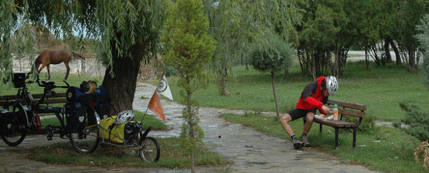 Nulla di particolare, basta solo munirsi di una bicicletta bella robusta, sacche impermeabili e sopratutto una sella molto comoda. Non essendo una agonista che duella contro il tempo, non ho bisogno di un allenamento particolare, pedalo il giusto per provare tutte le attrezzatura e l’assetto di guida a pieno carico. Per quanto riguarda invece tutti i visti necessari ad attraversare i vari Paesi, non me li procuro prima di partire, perché questo mi costringerebbe a definire itinerari ben prestabiliti. Preferisco di gran lunga intraprendere il viaggio giorno per giorno e procurarmi i documenti necessari strada facendo, mosso solo dall’istinto e dalla più totale libertà. In questo modo finora ho vissuto avventure inaspettate e meravigliose, visitando Paesi di cui avevo solo sentito il nome.