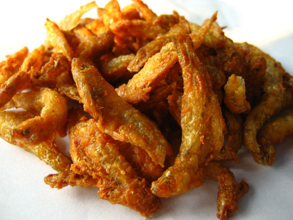 Rosolate l’aglio in padella con un bel po’ di olio, poi toglitelo e friggete le acciughe che avrete nel frattempo infarinato con la farina di mais. Sono pronte quando saranno dorate…sistematele sulla carta da cucina per togliere l’unto in eccesso e servite subito cosparse di prezzemolo tritato.