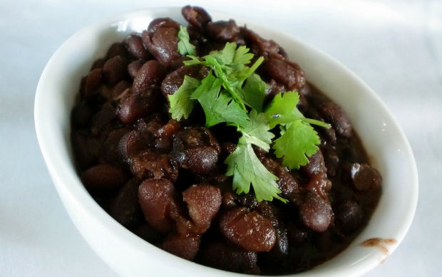 Tagliate a listarelle la cipolla e i serranos (o il peperoncino verde) e fateli soffriggere in una casseruola. Versate i fagioli cotti, schiacciandoli con una forchetta, ed insaporite con il coriandolo. Cuoceteli ancora finchè il liquido in eccesso non si sarà assorbito: deve risultare una salsa soda.