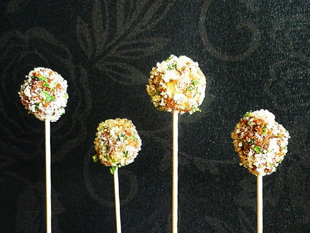 Stecchino da cocktail su ogni pallina e servite bollenti