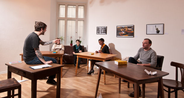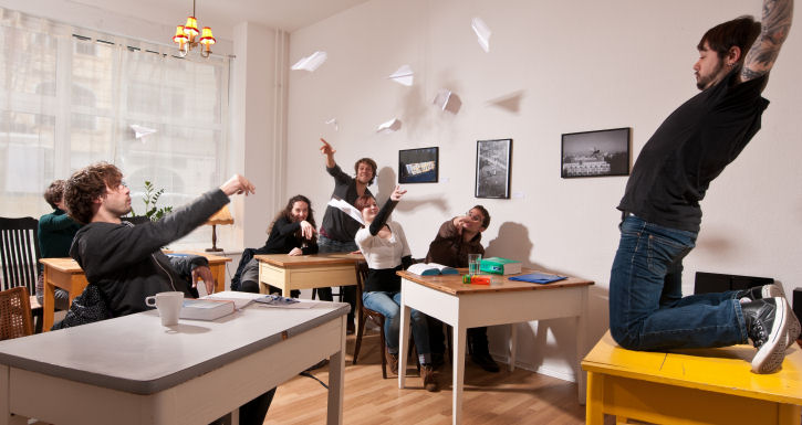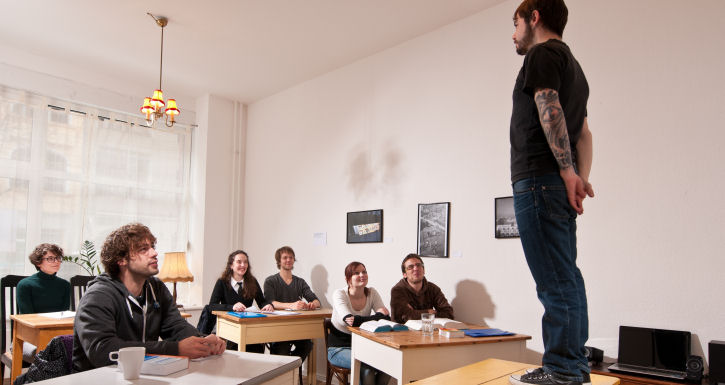 Il nostro metodo, decisamente anticonvenzionale. Non puntiamo a diventare una scuola come quelle già esistenti qui a Berlino, con classi di 20-30 studenti, piuttosto cerchiamo di creare un ambiente il più informale e comodo possibile, cosicché gli studenti possano essere a loro agio e imparare meglio. Per lo stesso motivo i gruppi sono ridotti al massimo a 10 persone e l’ambiente che si crea è decisamente rilassato. Anche i nostri insegnanti contribuiscono ovviamente all’ambiente: cerchiamo sempre di assumere persone che rientrino nello "stile" della scuola e quindi che abbiano competenze didattiche, ma che siano anche in grado di rendere le lezioni più divertenti e di creare l’ambiente informale che ci piace tanto.