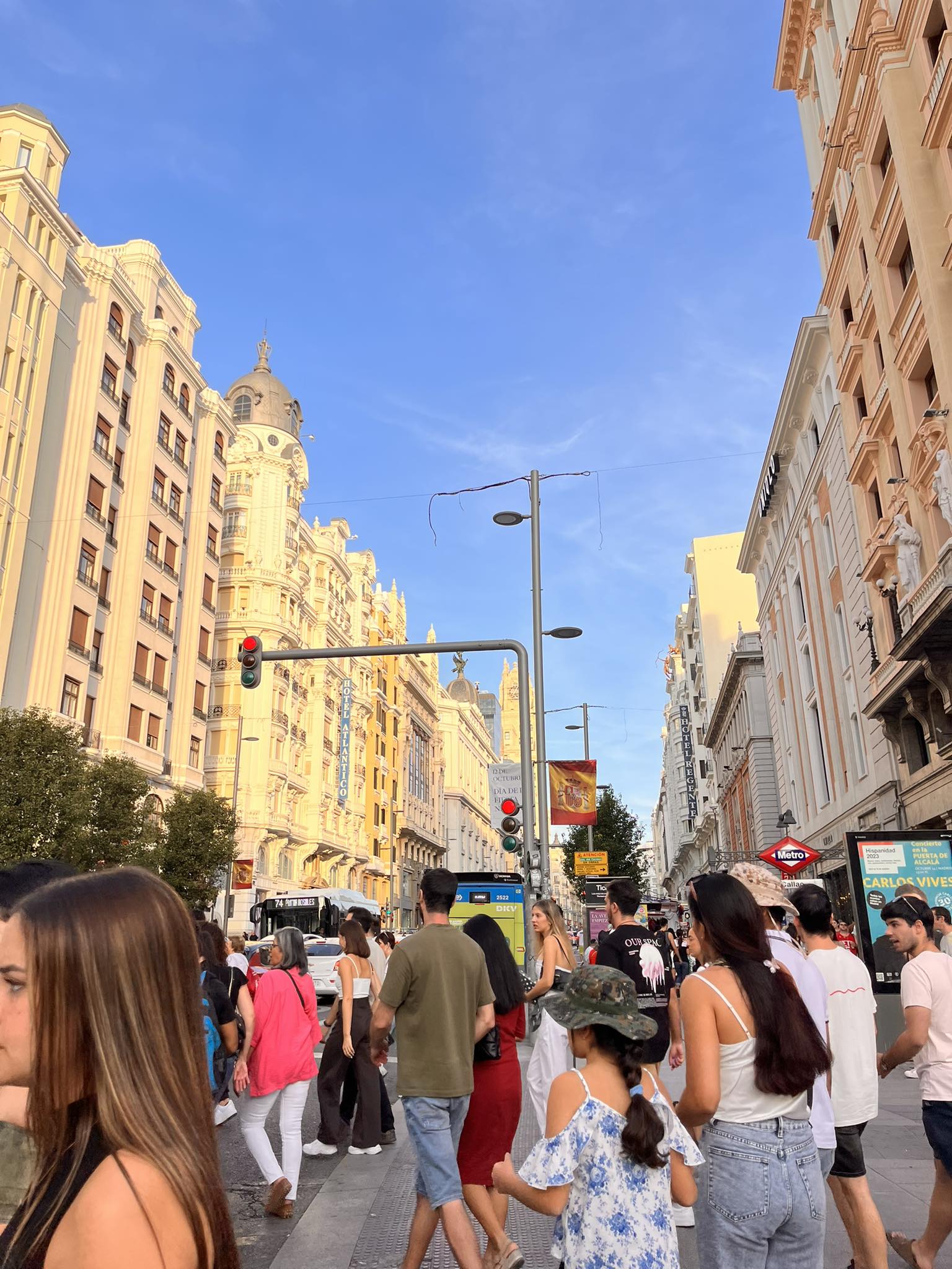 “¡Calma! Todo pasa”, ecco le parole che senti uscire spesso dalle loro bocche! Le giornate sono molto lunghe, cominciano con molta calma rispetto all’Italia, magari anche alle 10:00, e finiscono altrettanto tardi la notte. Ho visto anche molta frenesia in alcuni orari della giornata, quelli che sono “gli orari di punta”. Madrid è sempre attiva, a tutte le ore del giorno e della notte, ogni giorno della settimana.
