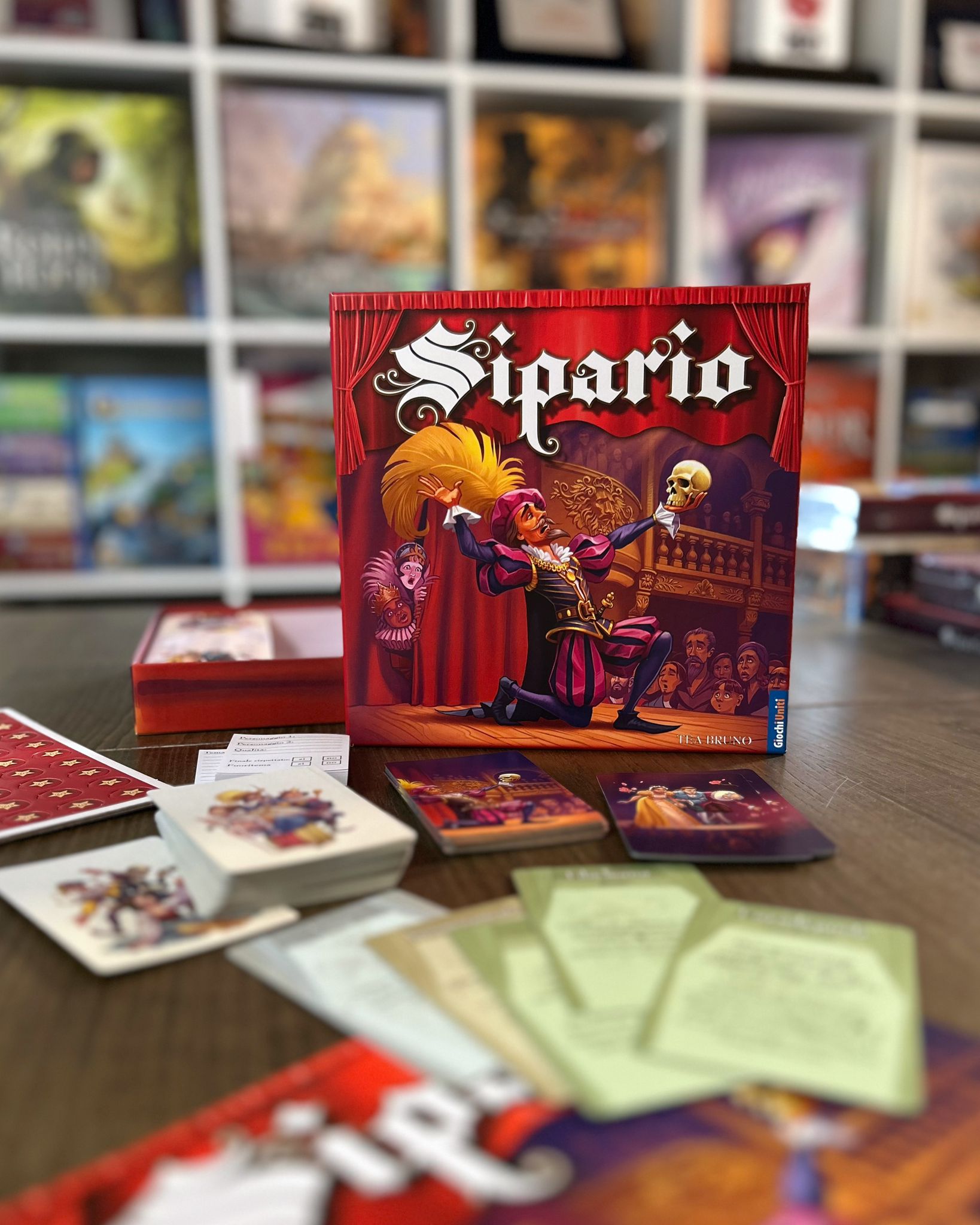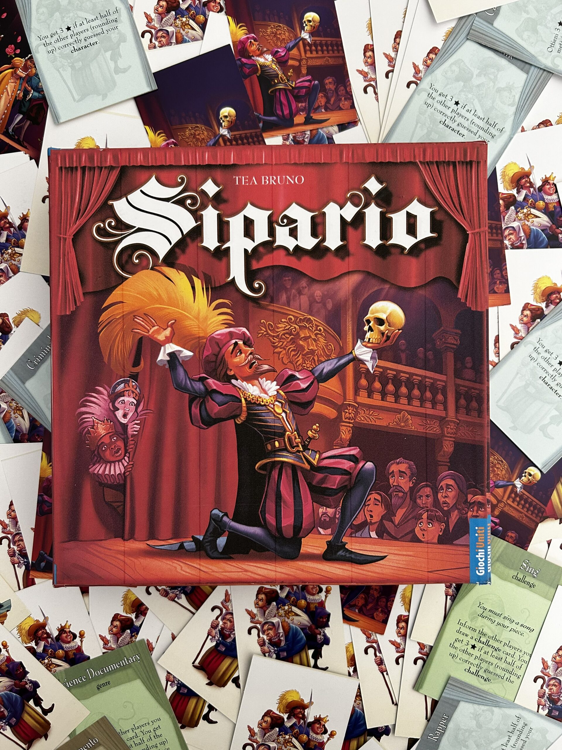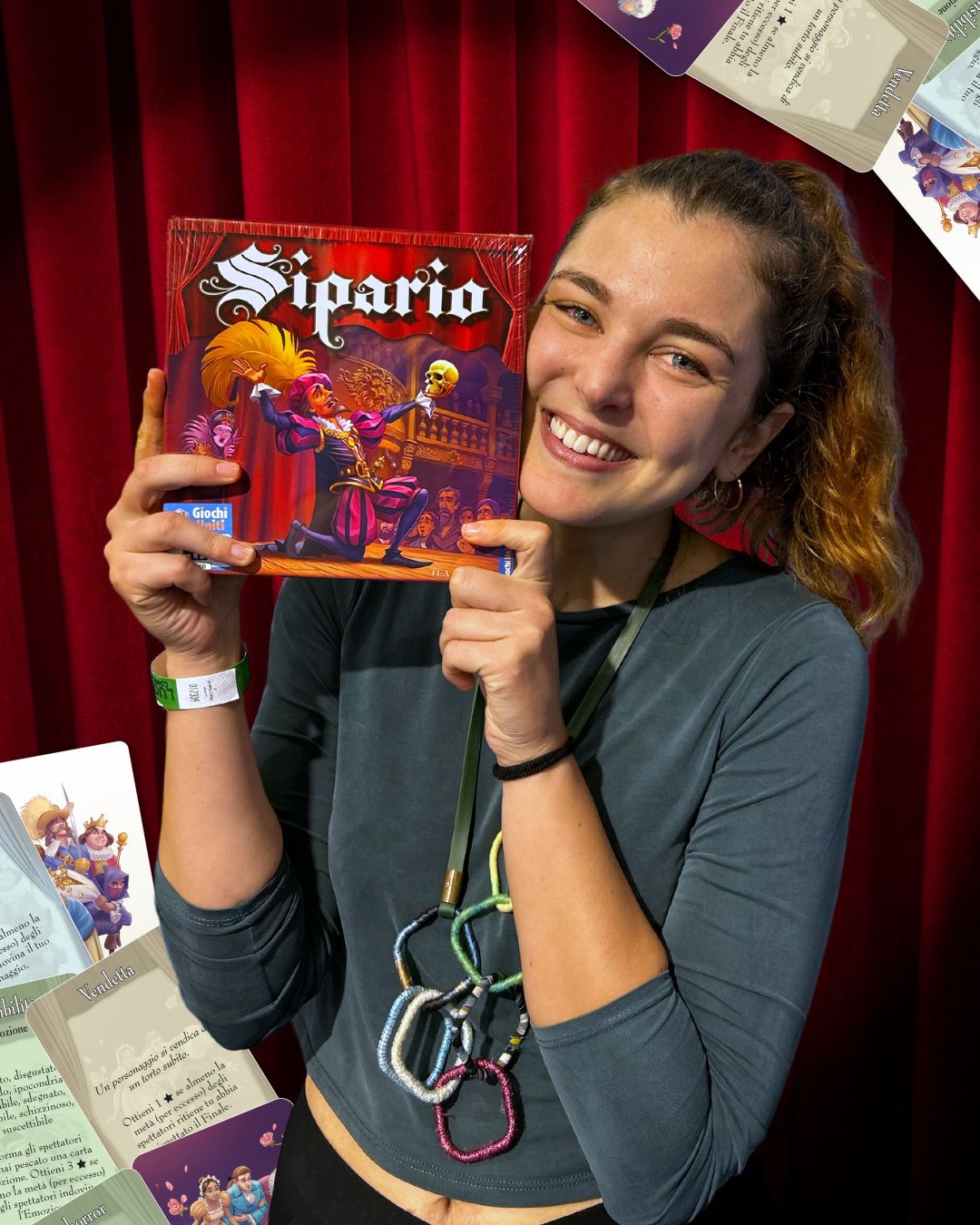 Mi fa ridere la domanda perché, senza saperlo, hai scritto proprio “dietro le quinte”, che è stato il nome del primo prototipo del gioco che ho creato. Per creare “Sipario” ho lavorato ininterrottamente per sei mesi pieni (negli ultimi due, non ho proprio dormito). Sono partita dallo studio di game design, affrontando la lettura di alcuni tomi in inglese, interminabili ma utilissimi. Parallelamente, studiavo testi d’improvvisazione, drammaturgia e didattica per il teatro, poi giocavo ad altri giochi, giocavo tanto.